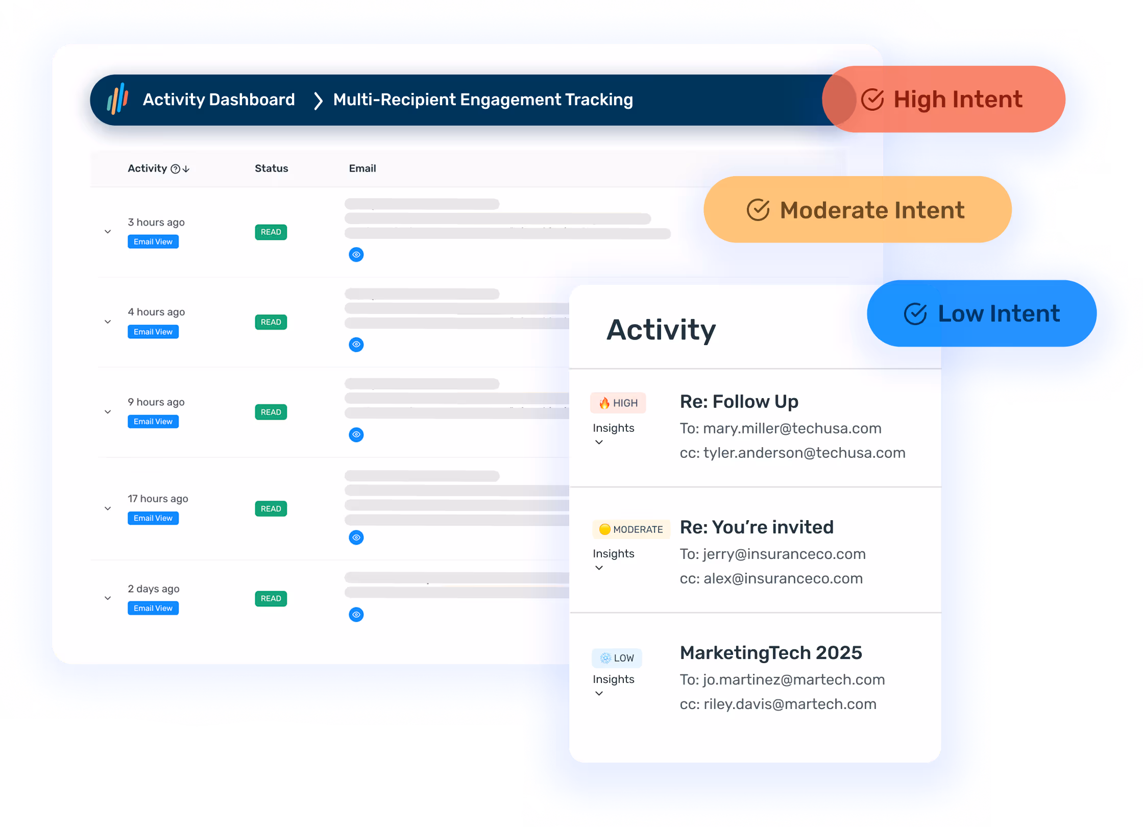 - Multi-recipient engagement tracking that shows who all engaged with an email.