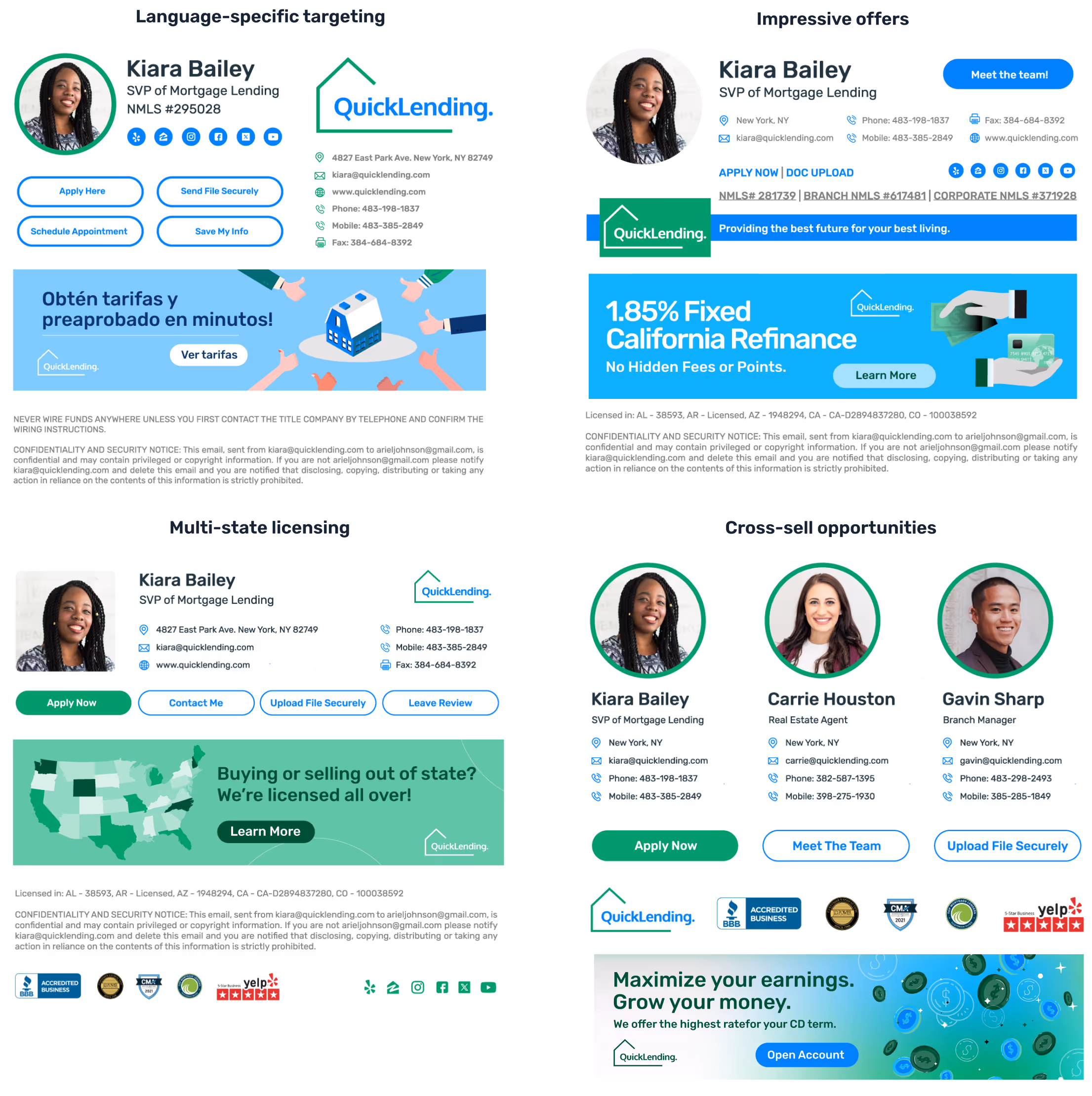 Think about how effective it might be for a first-time home buyer to see a beautifully branded email signature banner that speaks directly to their pain point? With sender and recipient targeting possible, this component of the email signature represents so many opportunities to deliver a personalized experience for your buyers.