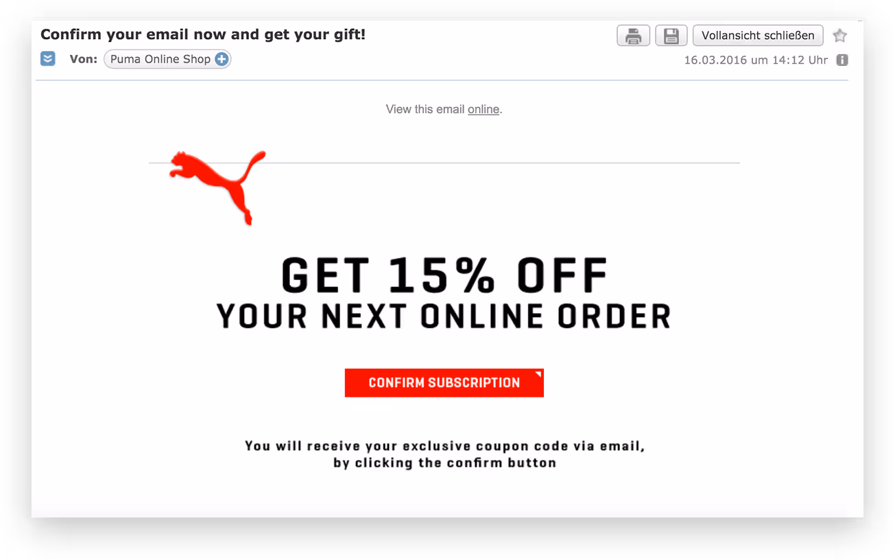 Some clever companies like Puma, offer an incentive to really hook you in. Check it out.