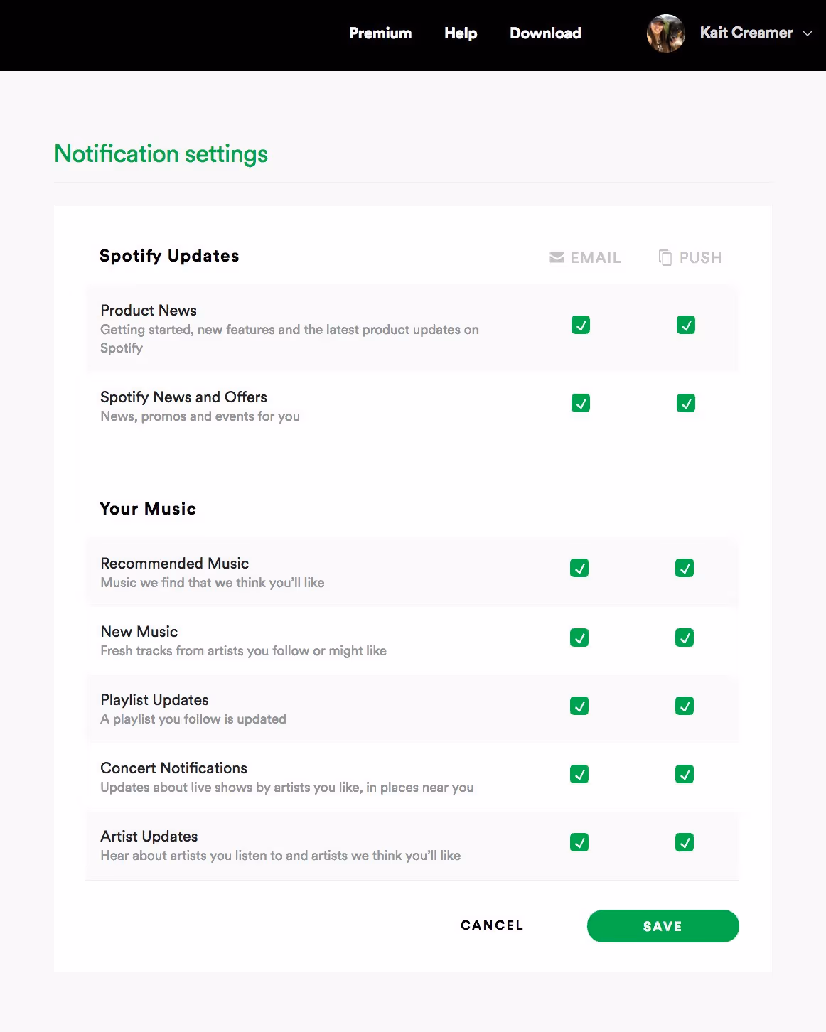 If you’re a lil’ nervous about having your recipients unsubscribe, build a preference page to prevent them from totally cutting you off. Here’s one from Spotify we love.